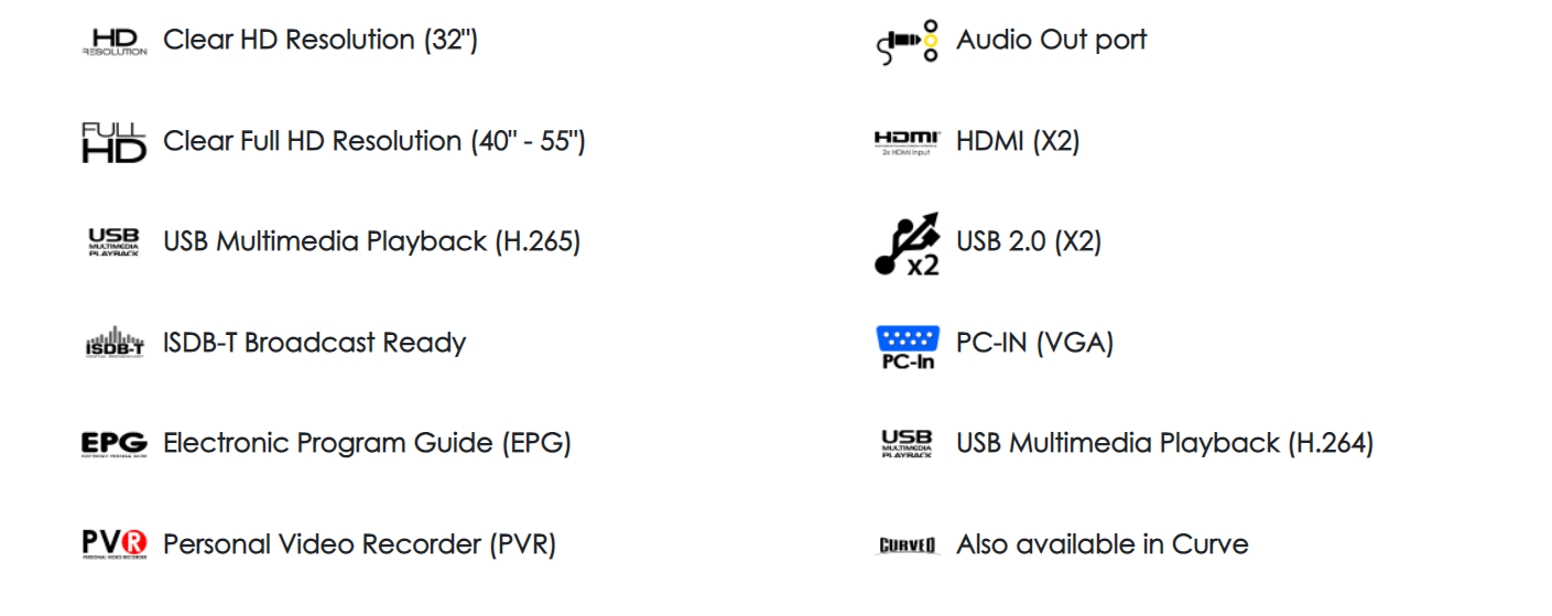 - Full HD Resolution (40″ up)